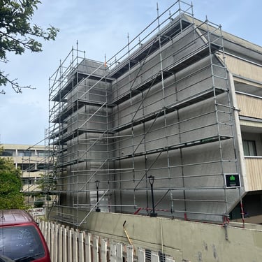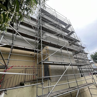 We are proud to have completed an impressive scaffolding project for a multi-family residential building as part of a comprehensive renovation initiative. This expertly executed setup provides safe and efficient access to balconies, ensuring workers can reach all necessary areas with ease. Adhering to the highest safety standards, our team has delivered a robust and secure scaffolding solution, facilitating a smooth and successful renovation process.