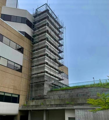 We construct a robust 70-foot scaffolding system encircling the building, providing seamless access from top to bottom. Thoughtfully designed ladder points at each level ensure safe, convenient entry for the crew, while precise alignment guarantees stability and a flawless setup. A pulley system is seamlessly integrated, effortlessly hoisting materials to any height with ease. This tailored solution blends height, accessibility, and efficiency, empowering workers to tackle the job confidently and safely. Whether it’s repairs, maintenance, or construction, our scaffolding delivers a sturdy, well-planned framework that keeps the project moving smoothly.